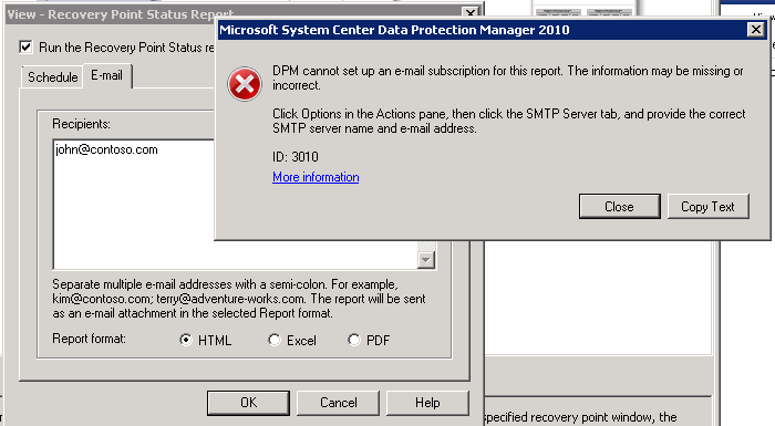 I ran into a problem today where I could not schedule reports to be emailed to recipients even though all the smtp server details were entered correctly and when I send a test message , it is received ok.