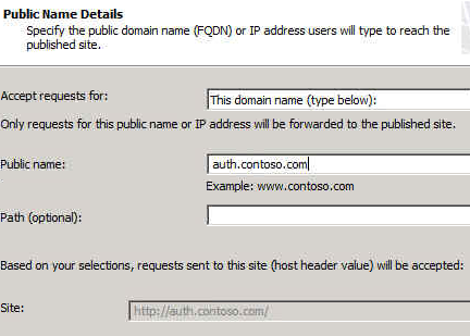 Enter the public name auth.contoso.com