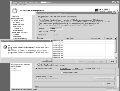 In the image above I ran into an issue when trying to create an admin pool for on Quest Notes For Exchange migration toolkit.This was for a migration to Exchange Online.