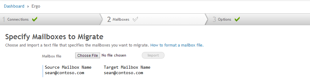 In section 2 you specify the source and target mailbox which is populated by a simple text file.