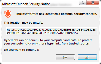 After performing a migration from Lotus Notes to Exchange Online , Some users may see the following security pop ups when trying to click on doc links.