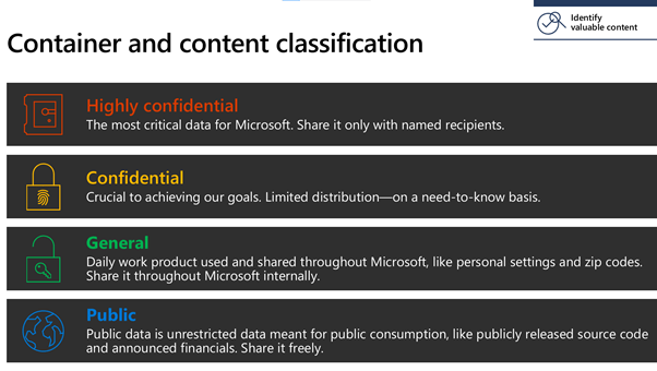 The container and content classification graphical representation above represents a high-level starting point around formalizing your data classification requirements. Microsoft have created an innovative solutions suite around data protection that is scalable for small, medium and enterprise requirements.