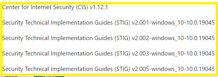 The Microsoft ‘Defender Vulnerability Management add-on license‘, provides the ability to create some of the following, security baseline assessments.
