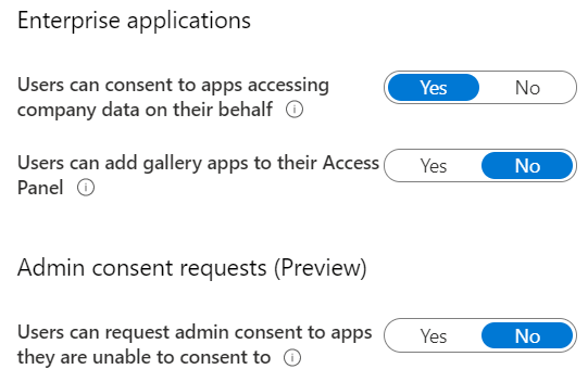 If this option is set to yes, then users may consent to allow applications which are not published by Microsoft to access your organization’s data, if the user also has access to the data. This also means that the users will see these apps on their Access Panels.